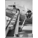 Loading tetra pak milk onto MacRobertson Miller Airlines aircraft 'Durack' for transport to the North West.