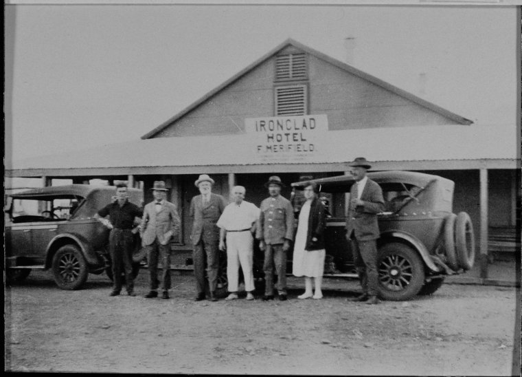 The sign on the hotel gives F. Merifield as either the manager or proprietor. Francis Merifield appears in the 1916 and 1920 Electoral Roll as being at Marble Bar. By 1925 Electoral Roll he is a hotel manager in Wyndham and in the 1927-1930 Post Office Directories as being in Nullagine.