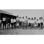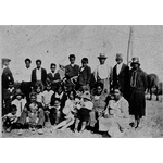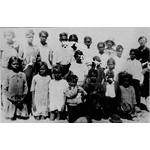 060944PD Back row L-R: Edna Kickett, Andrew Pickett, Theresa Stack, Bill Winmar unknown, John Winmar, Fred (Jock) Winmar, Miss May McRidge, Simon Yarran, Fred Jacobs, Miss Mary Belshaw; Front: Mary Stack, Linda Kickett, Mona Kickett, unknown, unknown, To