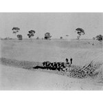 060935PD Fred and Charlie Winmar with their team of six horses making a dam at Sunny Vale farm (Stacey's farm) in the late 1920s. Many of the Badjaling men worked at "Sunny Vale".