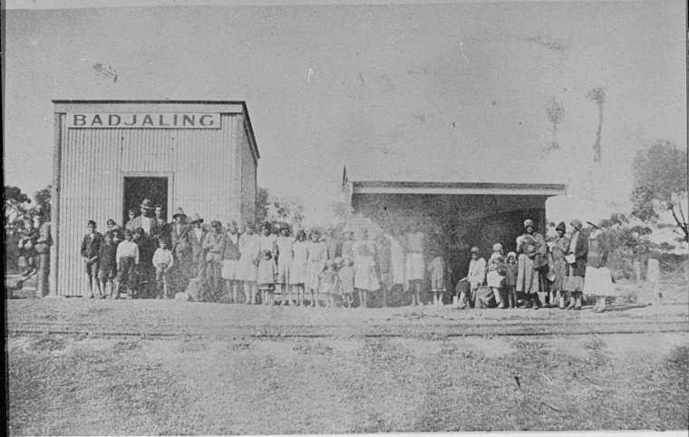 060923PD A group of Badjaling residents at Badjaling siding in the late 1920s. All of the residents gathered to meet or farewell visitors