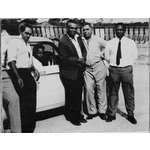 061179PD L-R Simon Yarran, Norm Yarran, snr., Arnold Yarran and Norm Yarran, jnr., and Bernie Yarran in the car, at Yoting church in the early 1970s