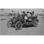 Photographs of working on Corunna Downs including Aboriginal people, Mr A. E. Stone the manager leaving in 1921, Hubert H. Brockman with the Powell girls, William Stanley (Billy) Wacher and Roy Hill, Alec (an Aboriginal man on the station) and Mr Campbell. Bales of wool are loaded for transporting to market, donkey teams are ready to pull them and the damage to the station from a cyclone on Boxing Day 1921.The boy at far left in 067302PD has been identified as Thomas Stream by his daughter Linda. Linda writes: My father Thomas Stream is the little boy in this photo he was born on Corrunna Downs and was buried there in 2013 next to the graves of Foulkes Taylor and his wife, this was my fathers wishes when he passed away. In the photo you can see my dad as a young boy with his tribe, my father was taken care of on the station by the station owner and the tribe of his mother, as his mother had died in child birth when he was born. My dad was born to a full blood girl and a german father who later deserted him. As you can see the boy in the photo is very fair and was quite often hidden by the station owner from the authorities.My father had no siblings as he was an only child.