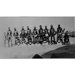 Photographs of working on Corunna Downs including Aboriginal people, Mr A. E. Stone the manager leaving in 1921, Hubert H. Brockman with the Powell girls, William Stanley (Billy) Wacher and Roy Hill, Alec (an Aboriginal man on the station) and Mr Campbell. Bales of wool are loaded for transporting to market, donkey teams are ready to pull them and the damage to the station from a cyclone on Boxing Day 1921.The boy at far left in 067302PD has been identified as Thomas Stream by his daughter Linda. Linda writes: My father Thomas Stream is the little boy in this photo he was born on Corrunna Downs and was buried there in 2013 next to the graves of Foulkes Taylor and his wife, this was my fathers wishes when he passed away. In the photo you can see my dad as a young boy with his tribe, my father was taken care of on the station by the station owner and the tribe of his mother, as his mother had died in child birth when he was born. My dad was born to a full blood girl and a german father who later deserted him. As you can see the boy in the photo is very fair and was quite often hidden by the station owner from the authorities.My father had no siblings as he was an only child.
