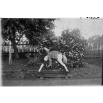 067338PD: Pet lamb and Commodore in a paddock at Torridon, ca. 1920