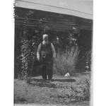 067210PD: Jim Jackson, driver of Western Australia's first railway train in the garden at Torridon near Donnybrook, 1910s
