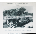 BA2670/3: Settlers assembled on the newly opened bridge with bullock team and wool cart, 5 July 1902