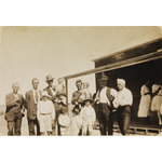 BA2670/8: At Badgebup. Back row L to R: George Goodchild, Joe Johnson, Jack Smith with James, Fred Asplin with John Goodchild, Stan Hollibone, James Asplin. Front: Harvey Johnson, ?, Bob Johnson, George Goodchild Jnr., 28 December 1924
