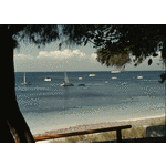 135825PD: View over Thomson Bay from Cottage K1, Rottnest Island, 1950s