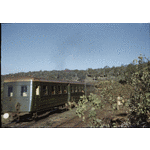 135974PD: DM + 2 coaches heading away on Eastern Railway near Swan View Tunnel, ca. 1955