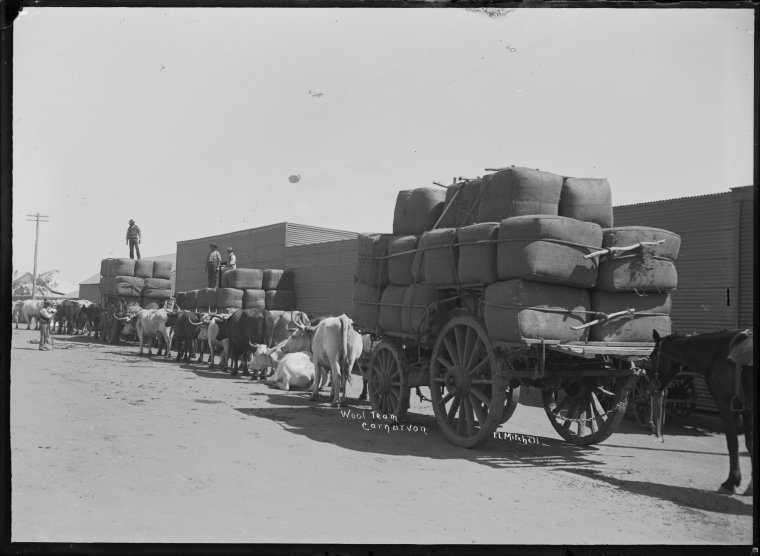 008456PD: Wool teams from Minilya Station at Carnarvon, 1911
