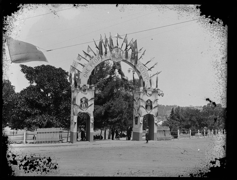 A drawing of this arch is published in the Western Mail 5 January 1901, p.31. The arch was erected as part of the celebrations and ceremonies for the proclamation of Australian Commonwealth.