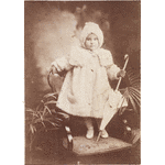 Marjorie Armstrong aged 2 or 3, with parasol and fur coat (reverse).