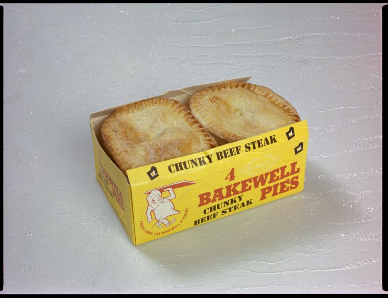332231PD: Bakewell Pies chunky beef steak pies, ca. 1985