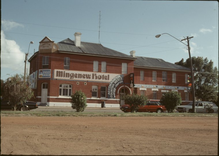 While the hotel has been branded the Mingenew Hotel on the wall the original name the Commercial Hotel can be seen on the roof over the doorway. All advertising for the hotel names it the Commercial Hotel and more recent images (2011) show it repainted on side as Commercial Hotel.