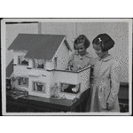 Laurel Gorn and Verna Flood (right, later Townsend) with Verna's dollshouse made by Wally Flood and given to her on her eighth birthday, 1949