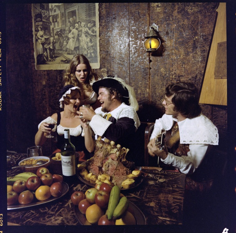 328185PD: Dirty Dick's Elizabethan Room restaurant, Perth, 12 November 1976. Inlcudes Billy Ward (King Henry) and David Vance.