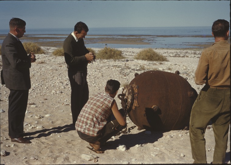 140357PD: Old WWII mine to be detonated, Exmouth, 1960