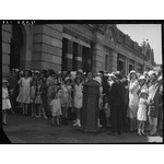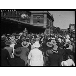 015405PD: Crowds welcome Father Christmas at the Perth Railway Station as he makes his way to Boans Toy Town, 21 November 1934