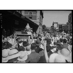 015402PD: Crowds welcome Father Christmas at the Perth Railway Station as he makes his way to Boans Toy Town, 21 November 1934