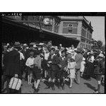 015397PD: Crowds welcome Father Christmas at the Perth Railway Station as he makes his way to Boans Toy Town, 21 November 1934