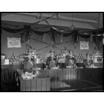 Young women at the Fauldings stand selling products made using Boronia; Avery, all British scales; young women promoting Kolynos dental cream; Young women demonstrating Electrolux vacuum cleaners; stall for Valkyrie jellies and cordials and Kolynos dental cream and Plaimar Original Boronia Perfume for Felton, Grimwade & Bickford Ltd.; young men demonstrating Eureka vacuum cleaners; Joymints sold by A.W. Allen Ltd.; Plaistowes chocolate, cocoa & confectionary manufacturers, Perth, W.A.; Anchor Flour; a stall of lamps and lightshades sold by Aladdin Industries Limited, 53 Cliff Street, Fremantle; motor cars sold by Arthur Bales Ltd.; Westralian Farmers Ltd.; a stall advertising Vita-Brits breakfast biscuits for Cereal Foods Ltd.; a stall advertising Humana, the phonograph with perfect tone.