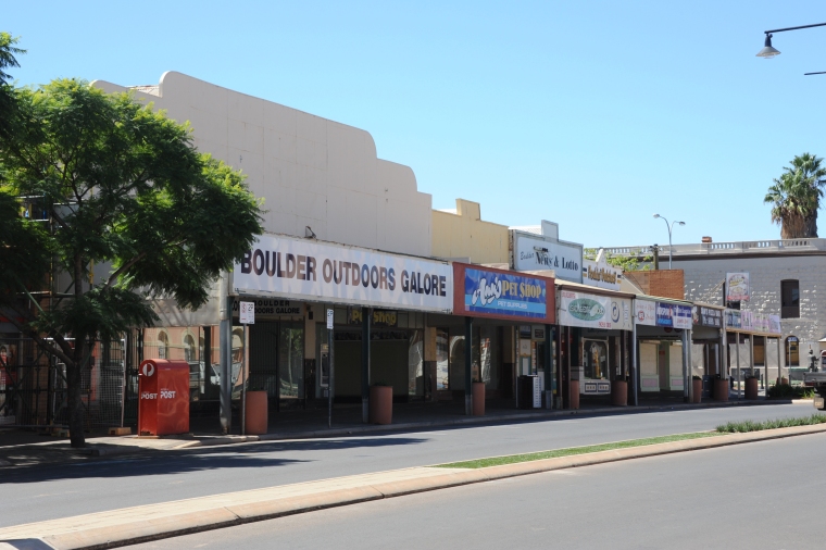 BA2500/WASL 3284: Boulder Outdoors Galore, Ann's Pet Shop and a newsagency and other shops in Burt St, Boulder, 6 April 2012