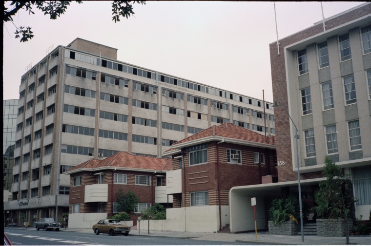 312301PD: L-R: Casablanca House (no. 196), Berkley Apartments (no. 190) and 188 Adelaide Tce, Perth, February 1983