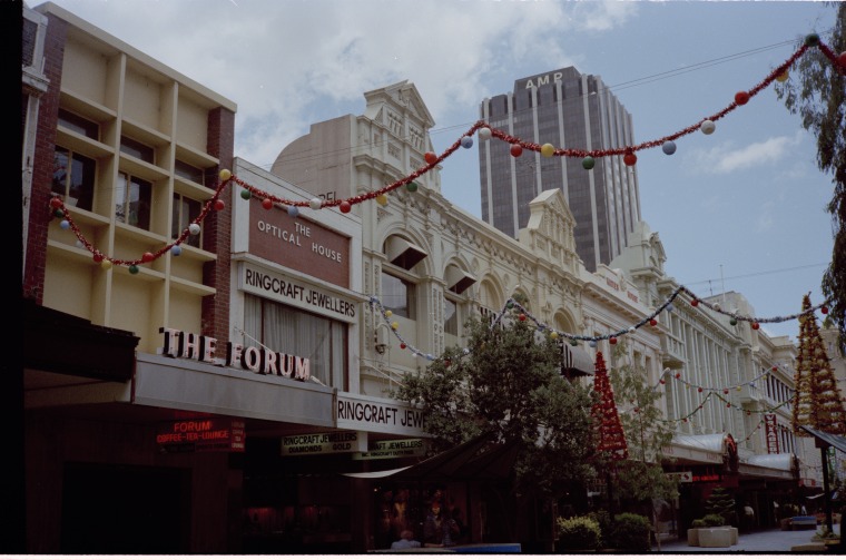 311649PD: The Forum Cofee-Tea Lounge, Ringcraft Jewellers in The Optical House, Hay Street Mall, Perth, December 1982
