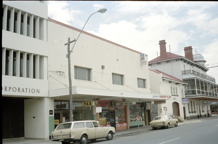 311289PD: The T.A.B., a take away, Joe Maiorana Hairstylist, Tropicana Night Club, Charlie's Piano Bar, the Great Western Hotel (corner William St), 76-86 James Street, Northbridge, January 1982