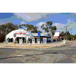 Includes a photograph of the geodesic dome at the Liberty petrol station, a rear W.A. example of the architecture of American Buckminster Fuller. BA2493/438 shows the memorial - using the nosewheel of the crashed plane - for the victims of the crash of the Amana Skymaster DC-4 which crashed 26 June 1950. BA2493/434 shows the Hotel Beverley, an art deco hotel formerly the Railway Hotel.