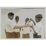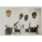 BA1340/ERA3/32C: L-R: Tom Murray, Freddie Meredith, Woobalee Blizzard and Ray McGrath conducting an experiment at Mt Margaret Mission School, ca. 1935