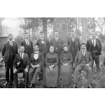 BA2642/33: Mc Leod family. Back row L to R: Tom, Harry, George, Bob, Jack, Alick. Front row: Jim, Dan, Mother, Emma, Pimo, 1905