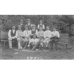 BA2642/80: Robert McQueen, seated with bat and ball, with cricket team, 1905