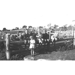 BA2642/106:Roy Dall, Clare Dall, Beryl Dall nursing Frank, Jean Price nursing lamb, Mabel standing, 1928
