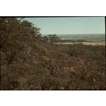 Book caption: The Wongan Hills near the township of that name are botanically interesting in a number of ways and have been written up in a Field Naturalists Club handbook. From the point of view of vegetation they are interesting in being one of the few localities where kwongan occurs other than on a sandplain. The slopes shown here are covered, apart from the scattered trees of Eucalyptus transcontinentalis, by shrubland of Melaleuca undulata as virtually the sole species. This community may be compared with that in the Moresby Range near Geraldton (Fig 3.94) where Melaleuca megacephala is the principal species and again represents kwongan on hill slopes.