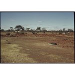 Book caption: The mineralised belts in the Interzone became the scene of intensive gold mining activity in the 1890s but later many of the mines and townships were abandoned. This scene shows the site of Davyhurst. The pile of bricks represents the hotel. Such deserted remains are common throughout the area, while in other places new mines have opened or old ones are still active.