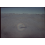 Title devised by cataloguer. Published caption: Taken through the back cabin window of a DC3. The shadow of our plane is in the rainbow, it is called the Flyers Cross. This is a fairly rare event. I photographed it only three times.