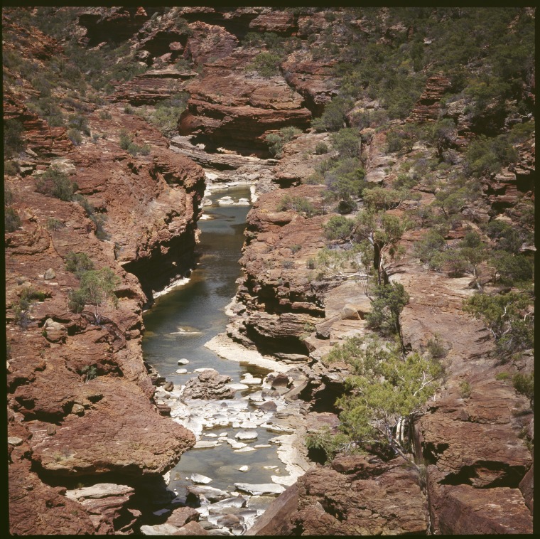 369078PD: The river gouges its way through a gorge in the Kalbarri National Park, ca.1990