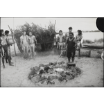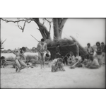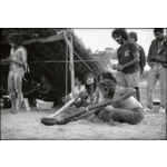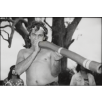 BA2698/14: Middar Dance Group performing at Clontarf, October 1988. Dancers identified as Baron Kelly (front centre), Danimar Lowe (seated to right) and Colin Kickett (back to camera).