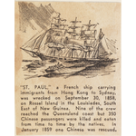Caption continues, in part: Was wrecked on September 30 1858 on Rossel Island in the Louisiades, south-east of New Guinea. 350 Chinese passengers were killed and eaten by the natives. In January 1859 one Chinese was rescued.