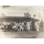 Title devised by catalgouer from information supplied by donor. Group portrait of unidentified people outside the Jubilee Hotel, Roebourne.
