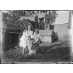 154065PD: Hughie (Frank Hubert) and Marjory (Edith Olive Marjory) Stevens with Buster, 6 March 1910