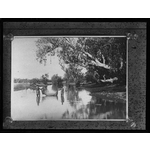 Aboriginal men fishing with a net in the De Grey River, north west Western Australia.