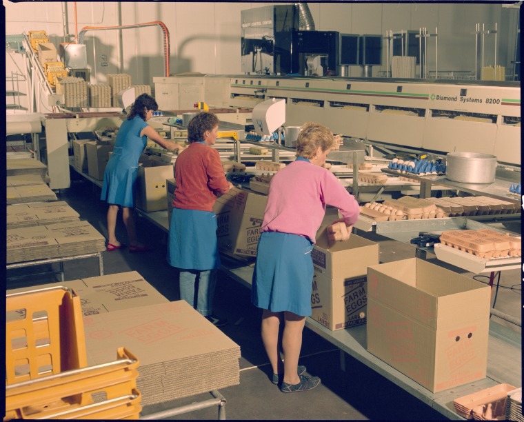 Title devised by cataloguer. Written on negative envelope: Golden Egg Farms. Egg production 10.5.1988.