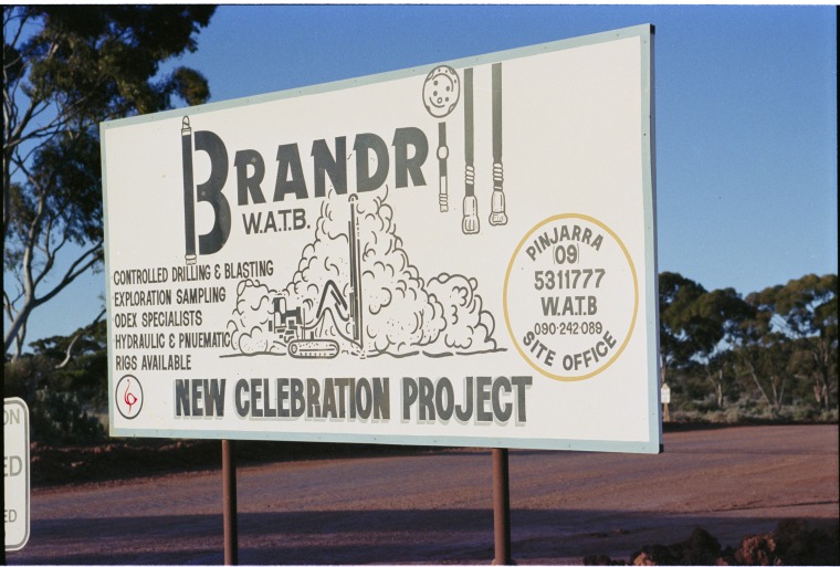 370535PD: Advertisement board for Brandrill at the New Celebration Mine, Kalgoorlie, 13 August 1993
