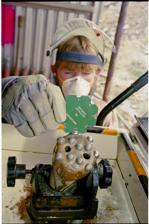 370538PD: Brandrill employee servicing drilling equipment at the New Celebration Gold Mine, Kalgoorlie, 13 August 1993