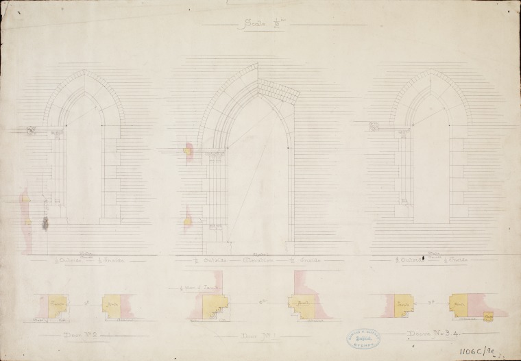 ACC 9592AD/9.5: St Georges Cathedral, Perth, W.A. : plan of arches, door numbers 1, 2, 3 and 4 [1880?]