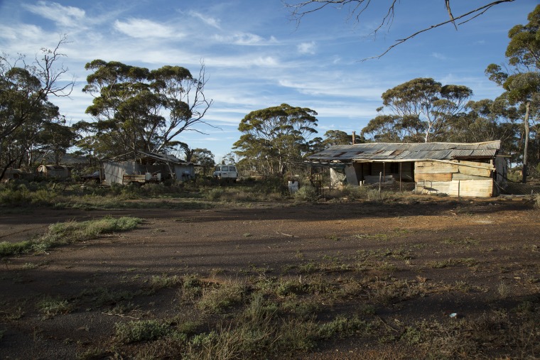 BA2493/1000: Miners shacks near the edge of the open cut gold mine between Lenneberg and King Streets, Marvel Loch, 27 June 2016