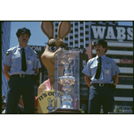 146950PD: Security guards with the America's Cup trophy on The Esplanade during the Australia II Day celebrations, Perth, 30 October 1983